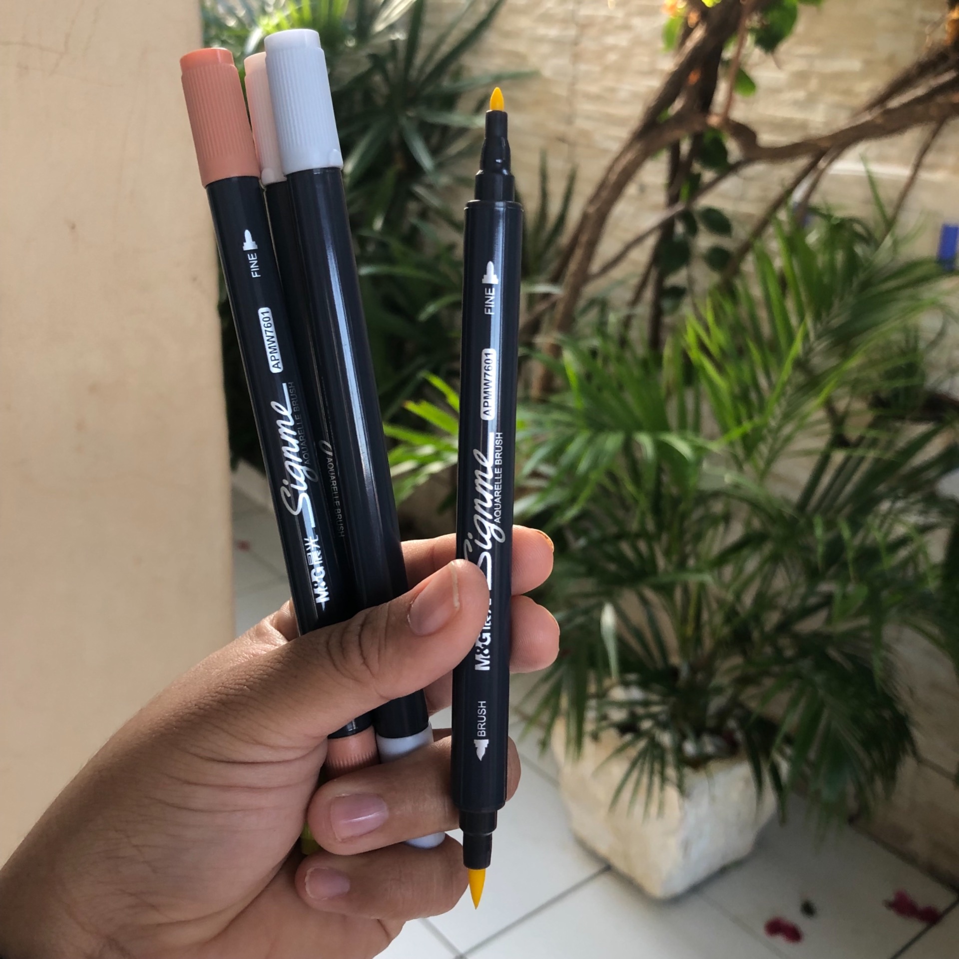 Brush pen com duas pontas: uma brush e a outra de pincel mais durinho. Disponivel nas cores da foto.
