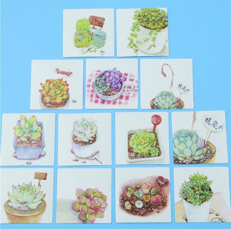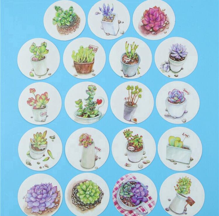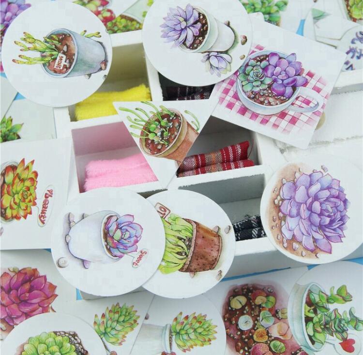 Caixinha contendo 40 adesivos, todos diferentes, com o tema plantas suculentas. Super fofo pra decorar seus cadernos.